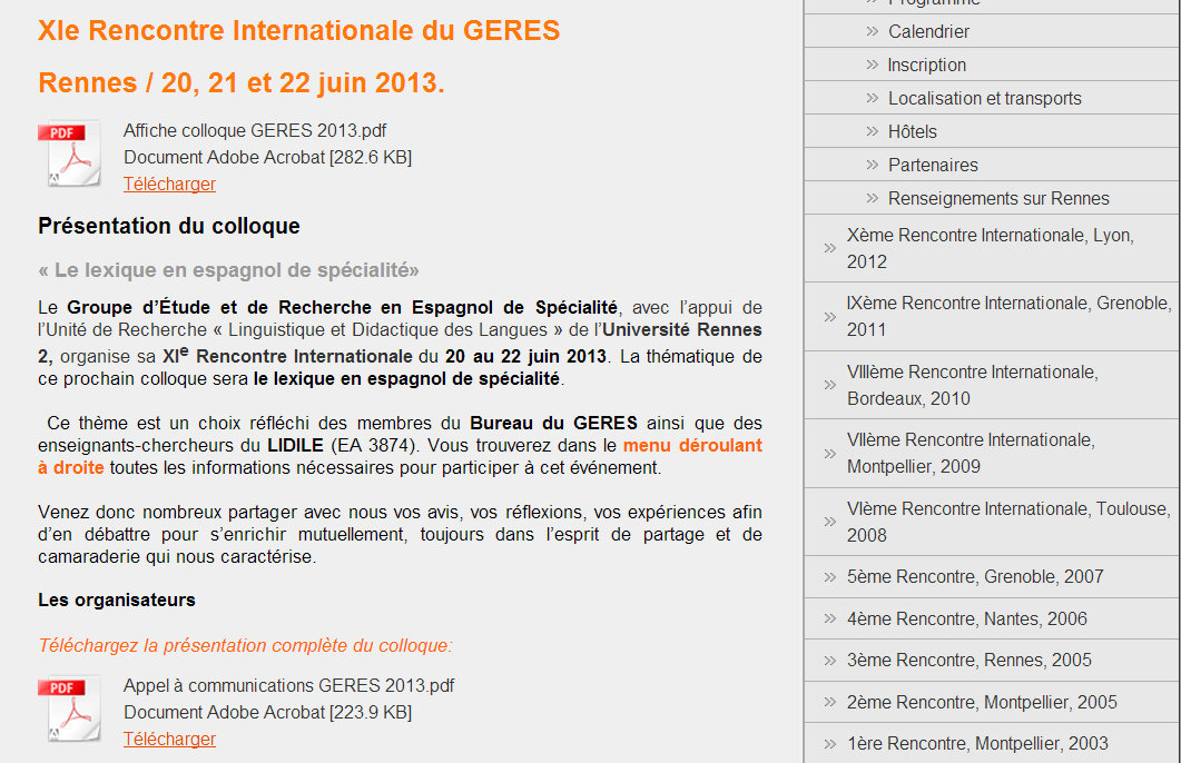 XIe Rencontre Internationale du GERES. Université de Rennes 2